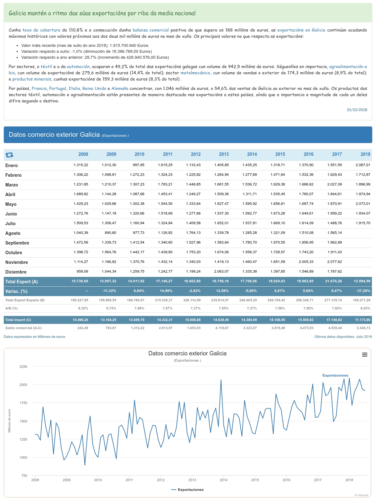 Galicia mantén o ritmo das súas exportacións por riba da media nacional