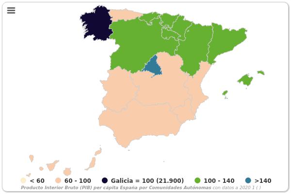 Producto Interior Bruto (PIB) per cápita España por Comunidades Autónomas