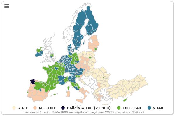 Producto Interior Bruto (PIB) per cápita por regiones NUTS2