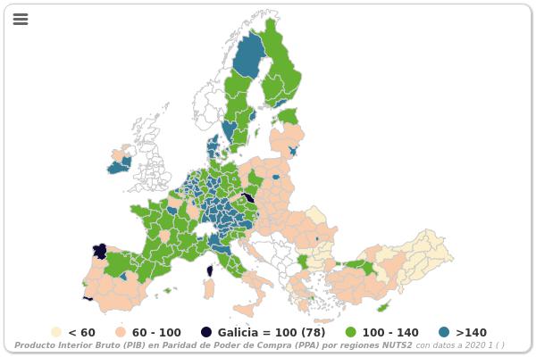 Producto Interior Bruto (PIB) en Paridad de Poder de Compra (PPA) por regiones NUTS2