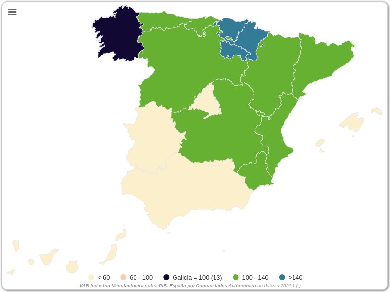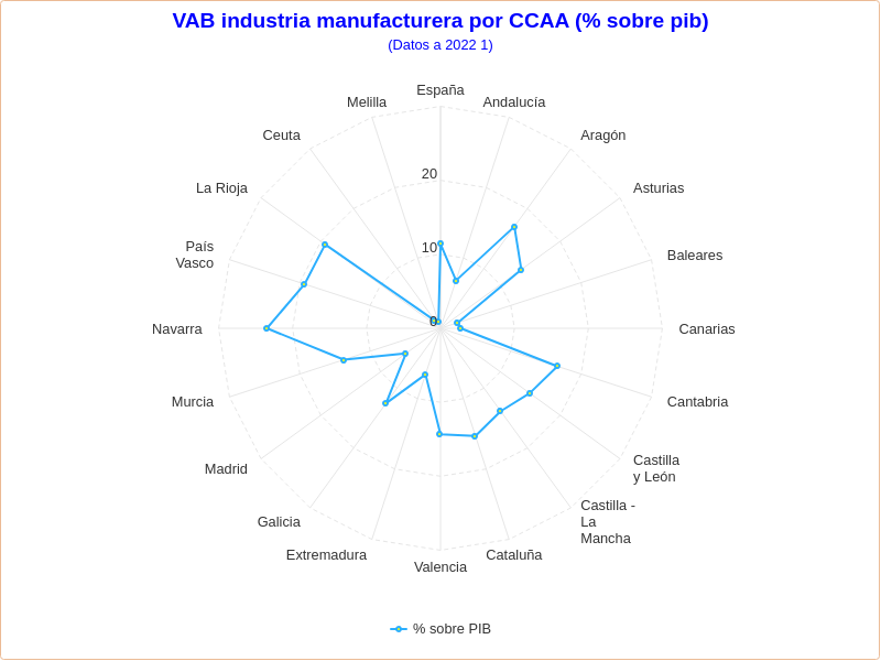 VAB Industria Manufacturera sobre PIB. España por Comunidades Autónomas