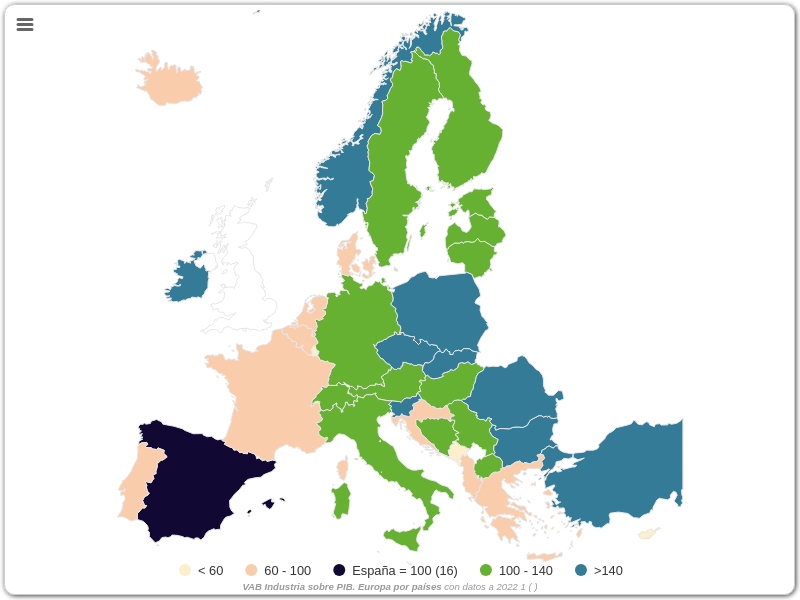 VAB Industria sobre PIB. España por Comunidades Autónomas
