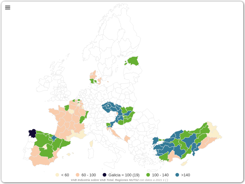 VAB Industria sobre VAB Total. Regiones NUTS2