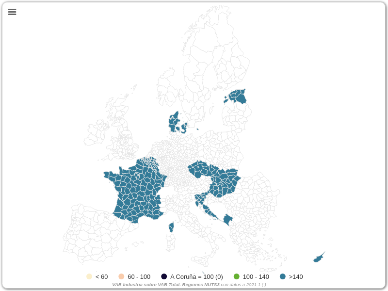 VAB Industria sobre VAB Total. Regiones NUTS3
