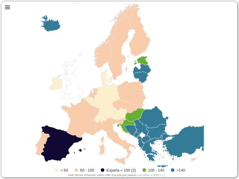 VAB Sector Primario sobre PIB. Europa por países